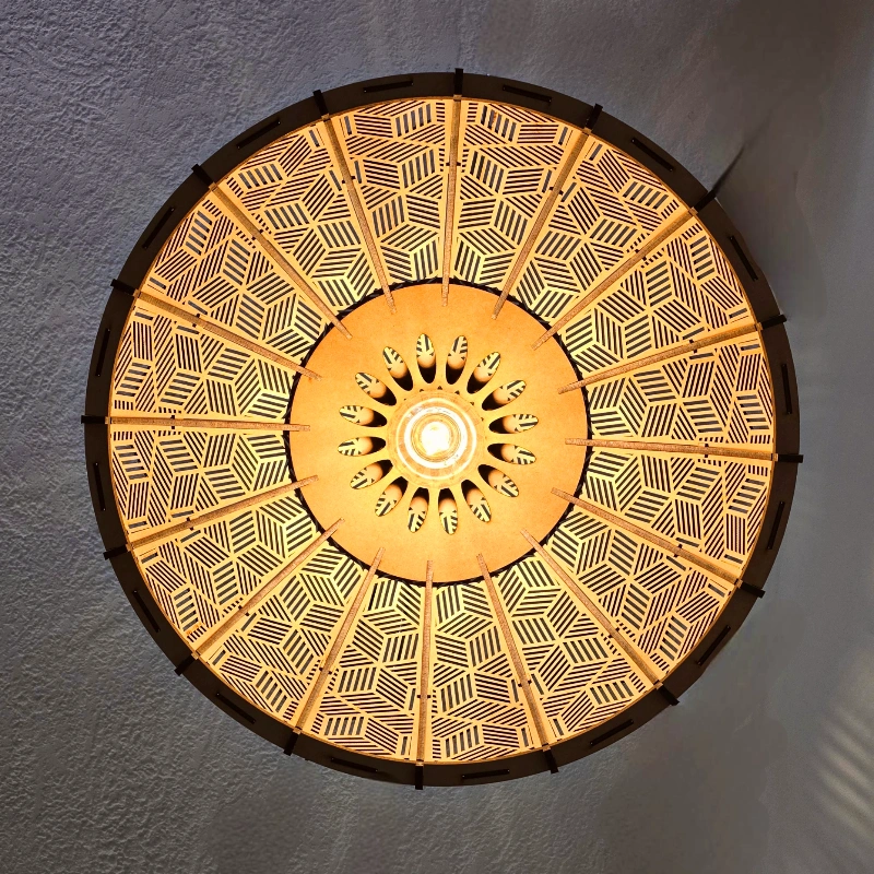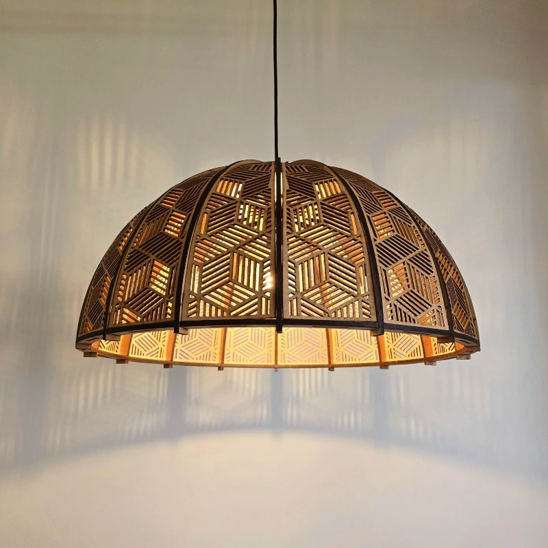 The Mali Dome Pendant Light is a truly unique creation—unlike anything else available. Inspired by natural forms yet reimagined with a contemporary edge, it combines timeless design with striking originality. Crafted from wood, its sculptural dome shape and intricate pattern bring warmth and artistry to interiors. When illuminated, it casts mesmerizing shadows that transform spaces into atmospheric works of art, making it not just a light, but a statement piece.