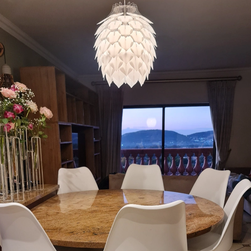 The Frosted White Pinopoly Pendant emanates an exquisite fragility reminiscent of shimmering ice. Its elegance is awe-inspiring, as it enchants with its dazzling radiance, infusing the entire room with a pristine luminosity.